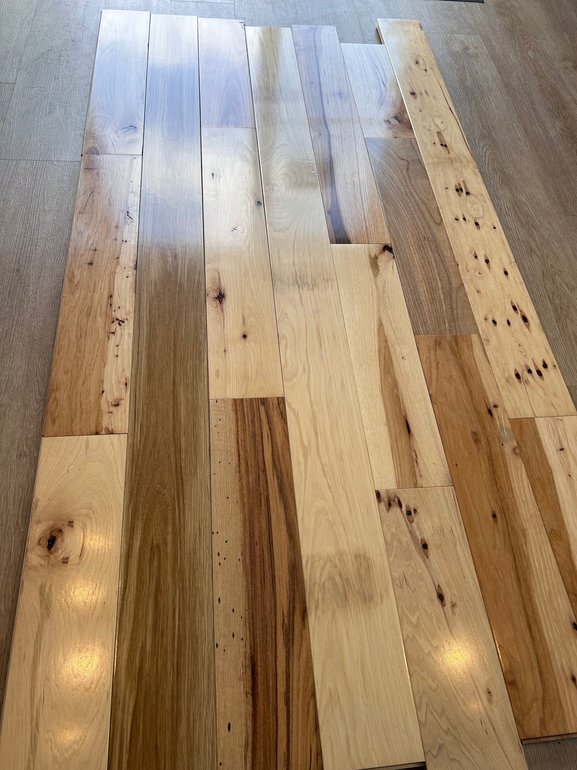 This item is made by Bruce in their Timberland value grade collection that will have filled knots and holes, light and dark wood, and minor imperfections. This grade of material is approximately half the price of the premium clear grade and is a great value in our experience. We recommend ordering at least 10% extra for cutting waste and expect to have a more rustic-looking floor. The pictures we provided were taken from an actual box of material from our inventory. We have sold millions of square feet of the Timberland value grade hardwood flooring.